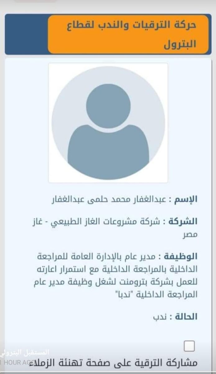 أكتوبر 14, 2024تصنيفات أخبار“عبدالغفار “مدير عام بإدارة المراجعة الداخلية بغاز مصر يتقدم رئيس تحرير موقع أبشر “طاقة ورقمنة ” بأجمل التهانى والتقدير ..وكذلك أسمى عبارات […]